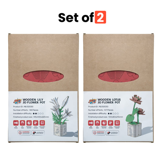 DIY Wooden Flower 3D Wooden Puzzle : Lotus & Lilly (Pack of 2)