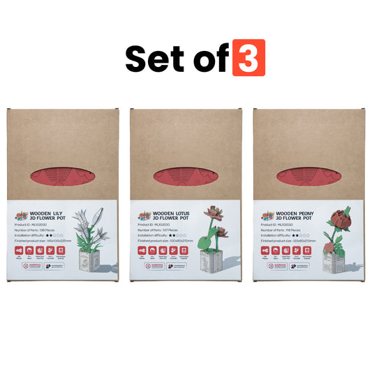 Lily, Lotus & Peony 3D Wooden Flower Pot DIY Kit – Pack of 3