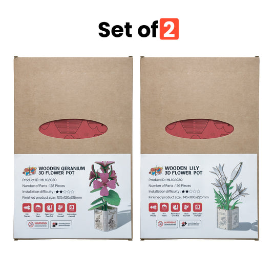 Geranium & Lily 3D Wooden Flower Pot DIY Kit – Set of 2