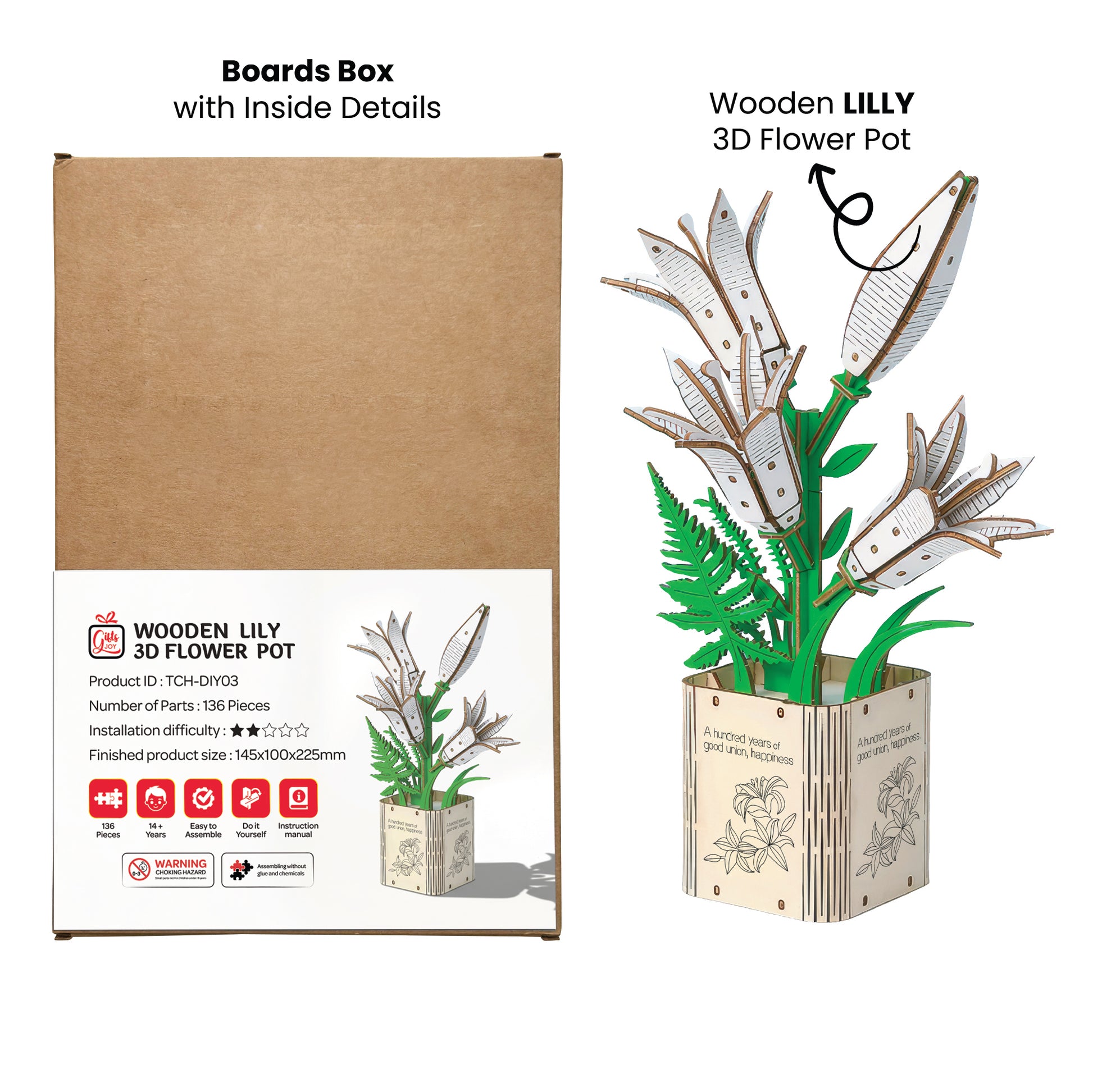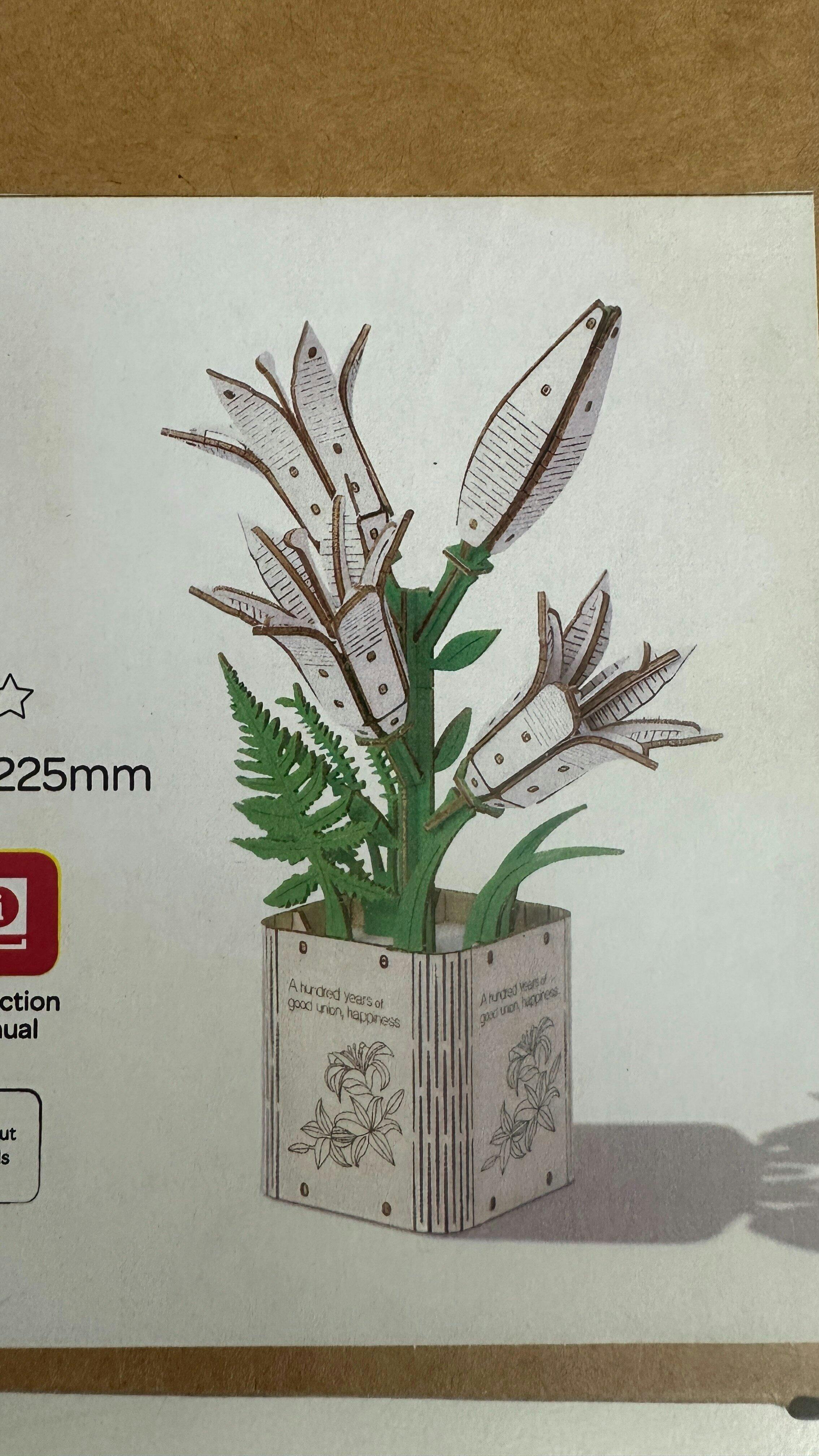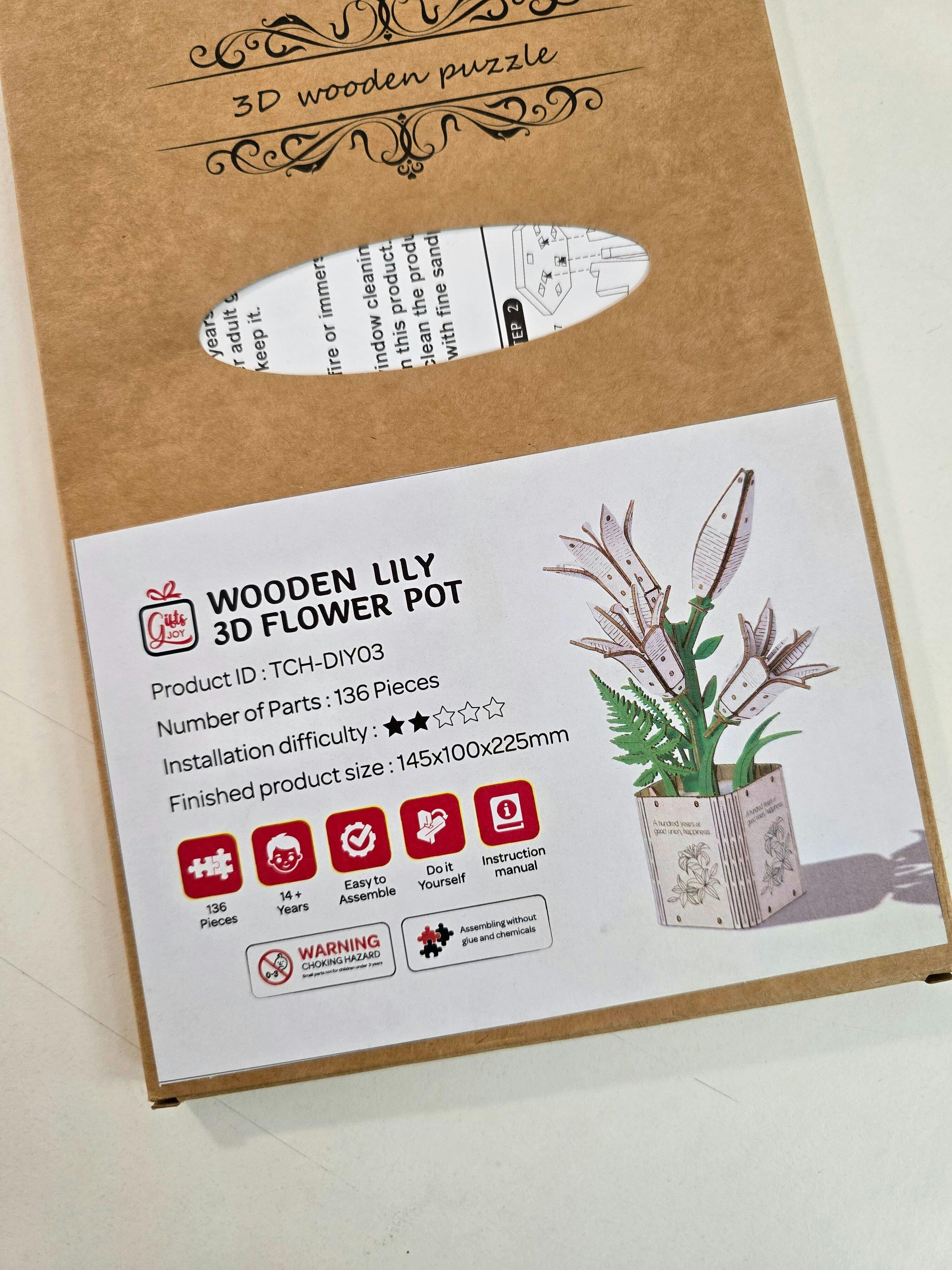 Create your own blooming masterpiece with Gifts Joy Lily DIY 3D Flower Pot Kit—a calming and engaging craft designed for adults and décor lovers. The kit includes pre-cut wooden pieces and a clear instruction manual, making assembly smooth, intuitive, and glue-free.